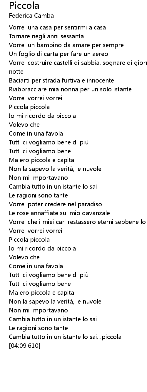 | [03:49.550] | Cambia tutto in un istante lo sai…piccola |