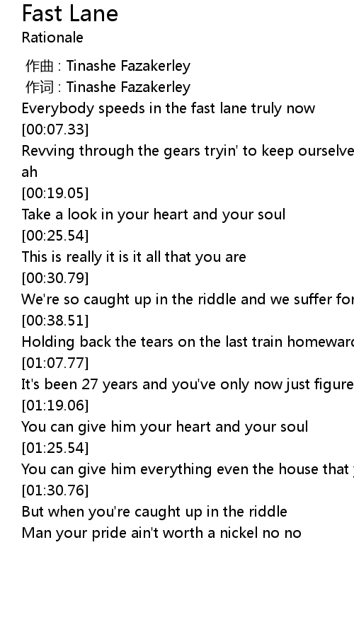 | [00:02.67] | Everybody speeds in the fast lane truly now |
