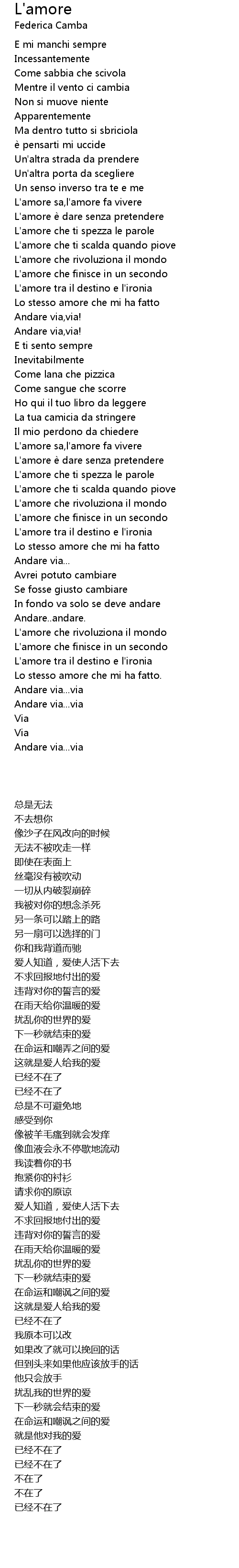 | [02:13.72] | L' amore sa, l' amore fa vivere |