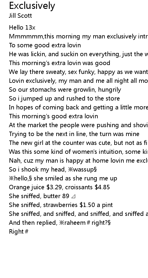 | Lovin exclusively, my man and me all night all morning | |