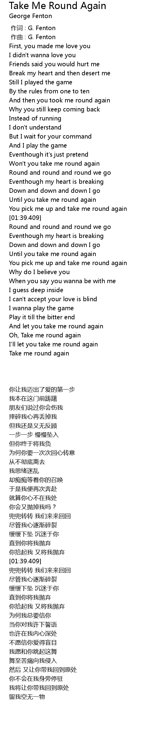 | [00:47.750] | Won' t you take me round again |