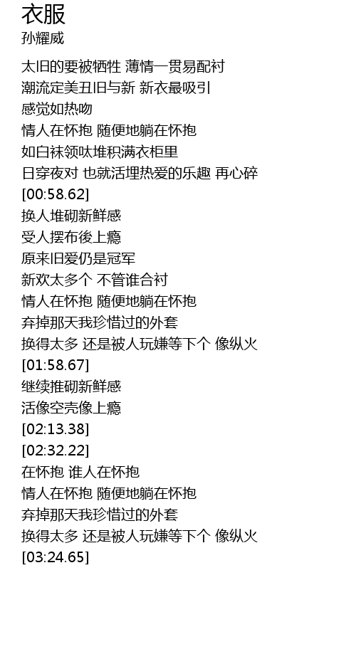 | [02:59.16] | 弃掉那天我珍惜过的外套 |