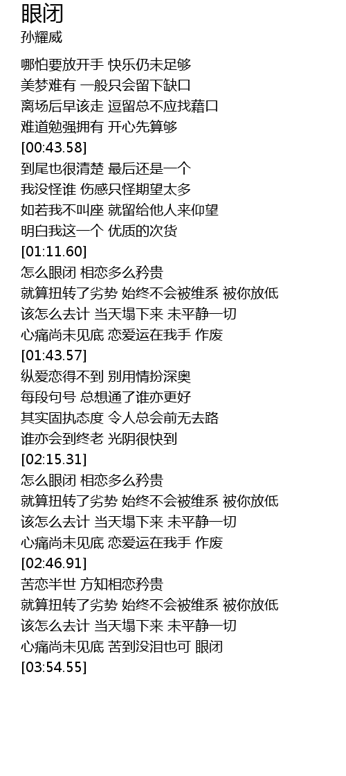 | [03:41.71] | 心痛尚未见底 苦到没泪也可 眼闭 |