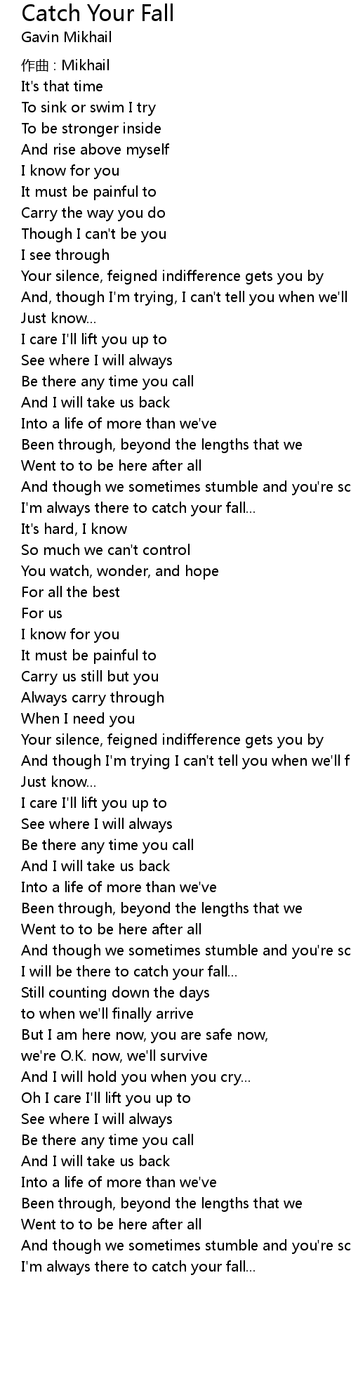 | 歌曲 | Catch Your Fall |