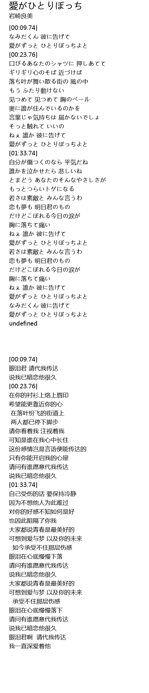 | [00:15.75] | 愛がずっと ひとりぼっちよと |