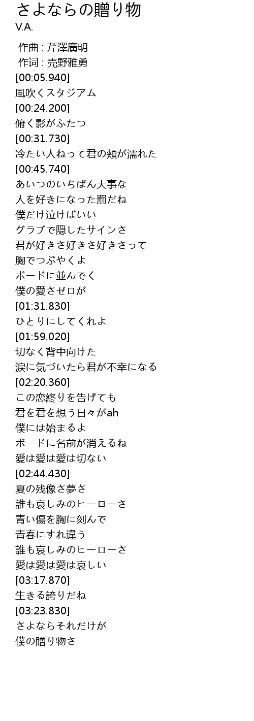 | [03:09.830] | 誰も哀しみのヒーローさ |