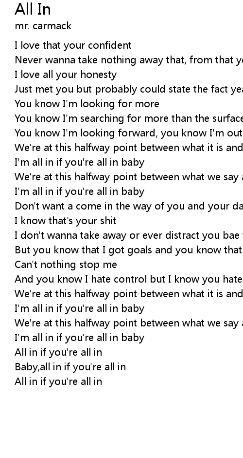 Baby,all in if you're all in |