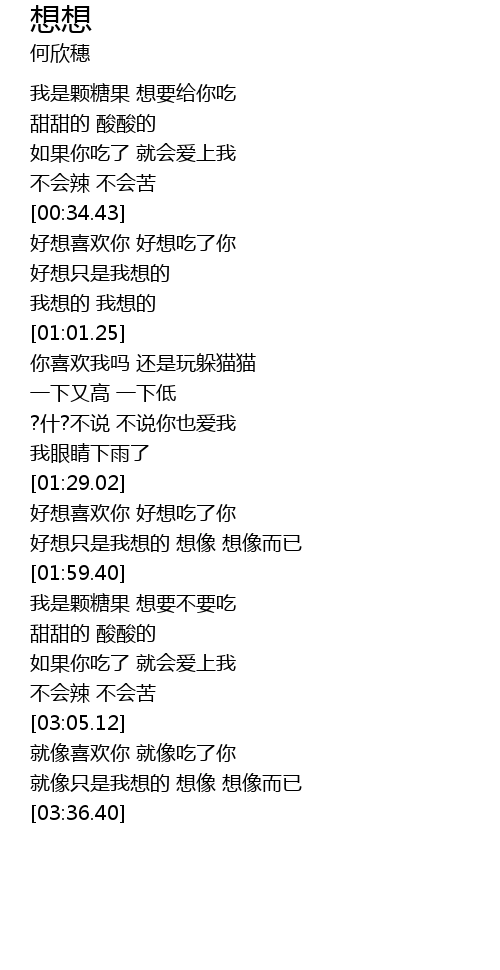 | [00:34.75] | 好想喜欢你 好想吃了你 |