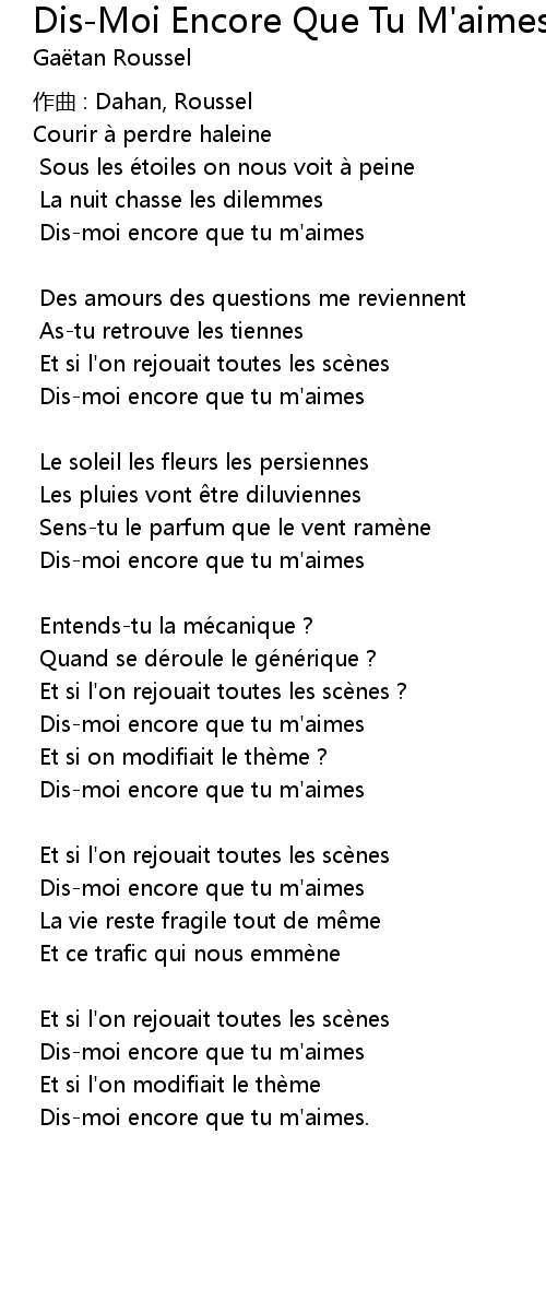 | 歌曲 | Dis-Moi Encore Que Tu M'aimes |