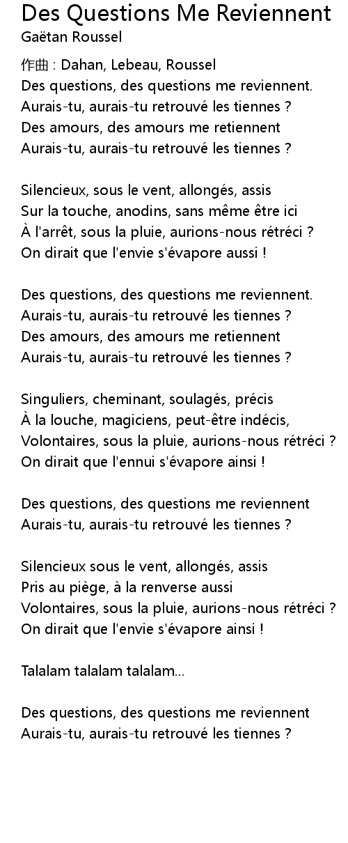| 作曲 : Dahan, Lebeau, Roussel | |