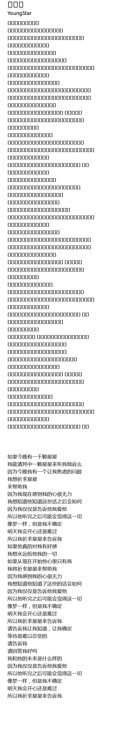 | [00:24.35] | 我能请其中一颗星星来听我倾诉么 |