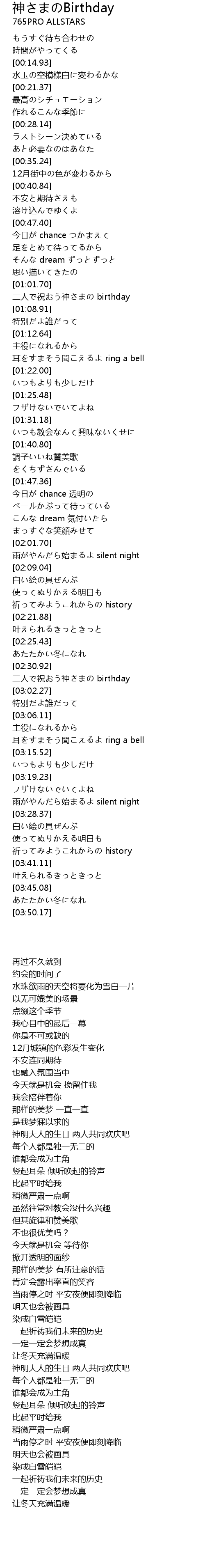 | [02:56.95] | 二人で祝おう神さまの birthday |