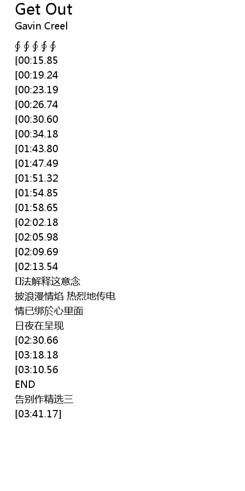 | [03:21.95][03:18.18][03:06.70][03:03.31] | Get Out Get Out Of My Life |