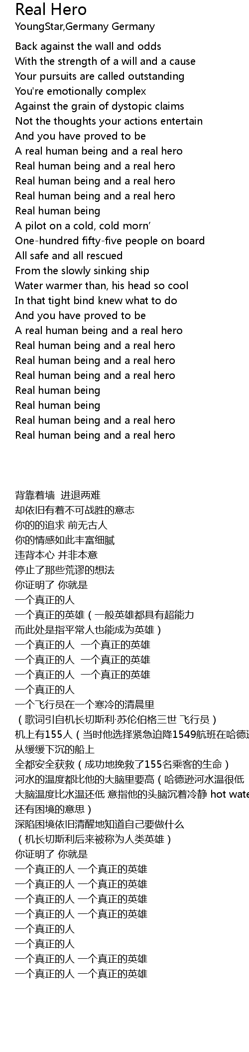 | [00:48.97] | 一个真正的人 一个真正的英雄(一般英雄都具有超能力 而此处是指平常人也能成为英雄) |