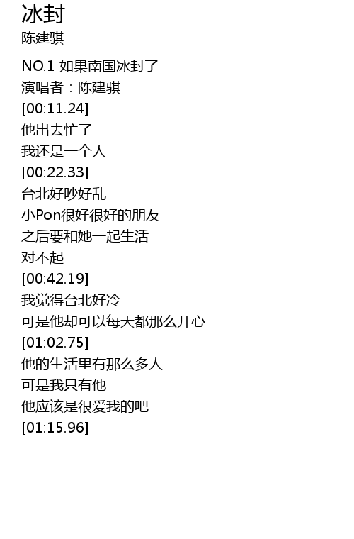 | [00:00.00] | NO.1 如果南国冰封了 |