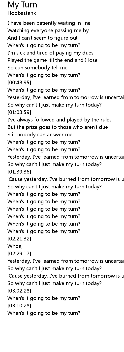 When's it going to be my turn? |