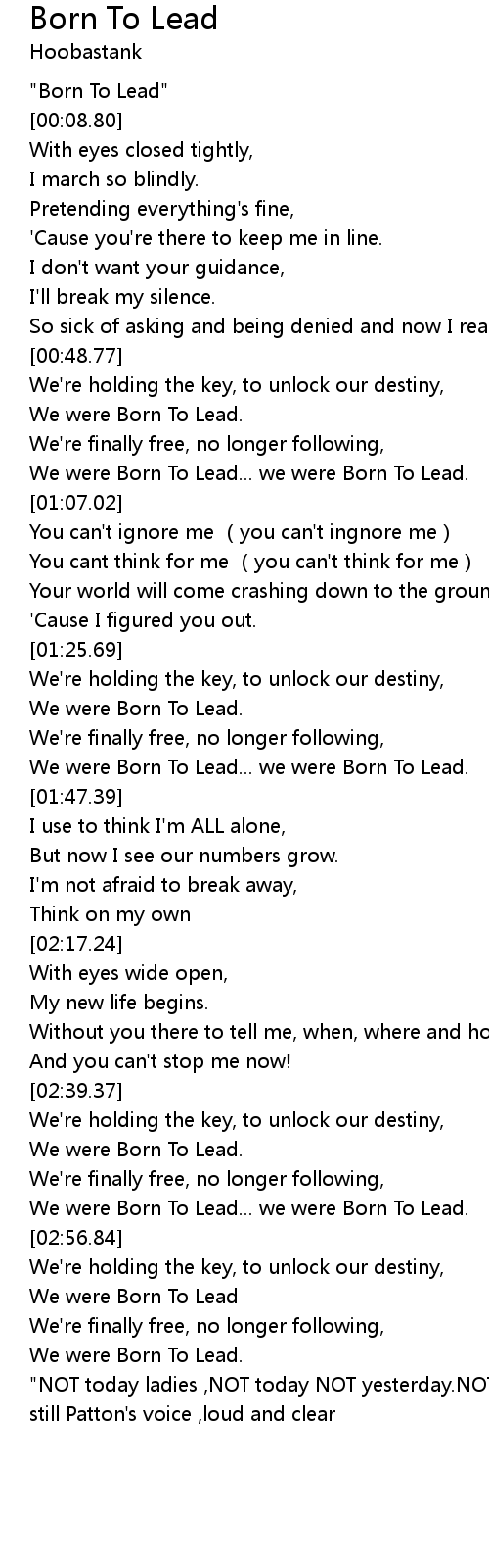 | [00:00.00] | "Born To Lead" |