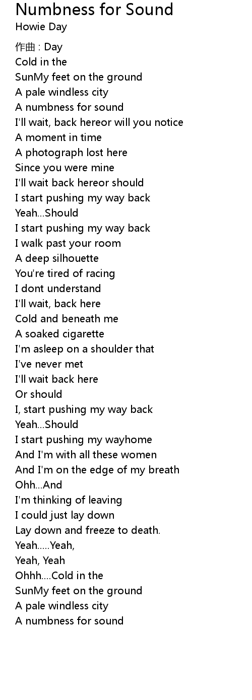 | 歌曲 | Numbness for Sound |