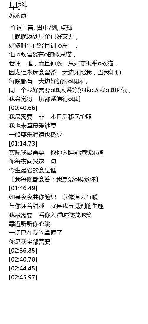 | [01:42.01] | 〔我每晚都会答:我最爱o既系你〕 |
