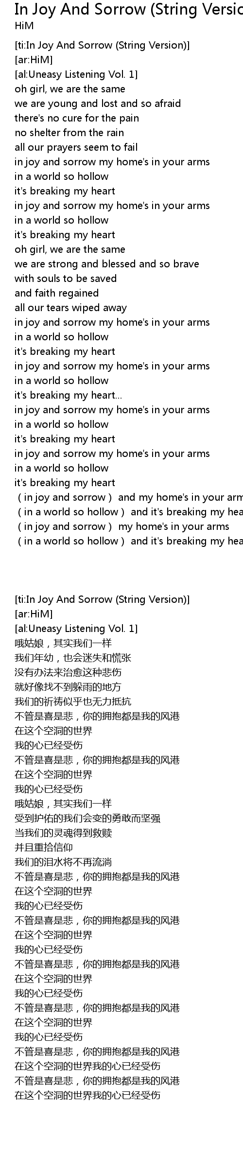 | [03:59.76] | in joy and sorrow my home' s in your arms |