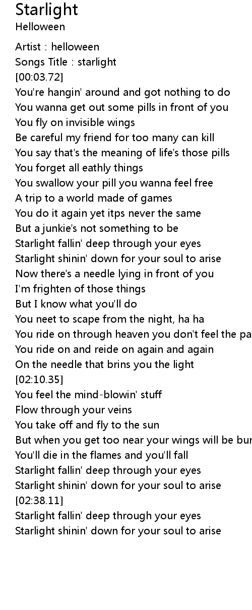 | [01:31.42] | Starlight fallin' deep through your eyes |