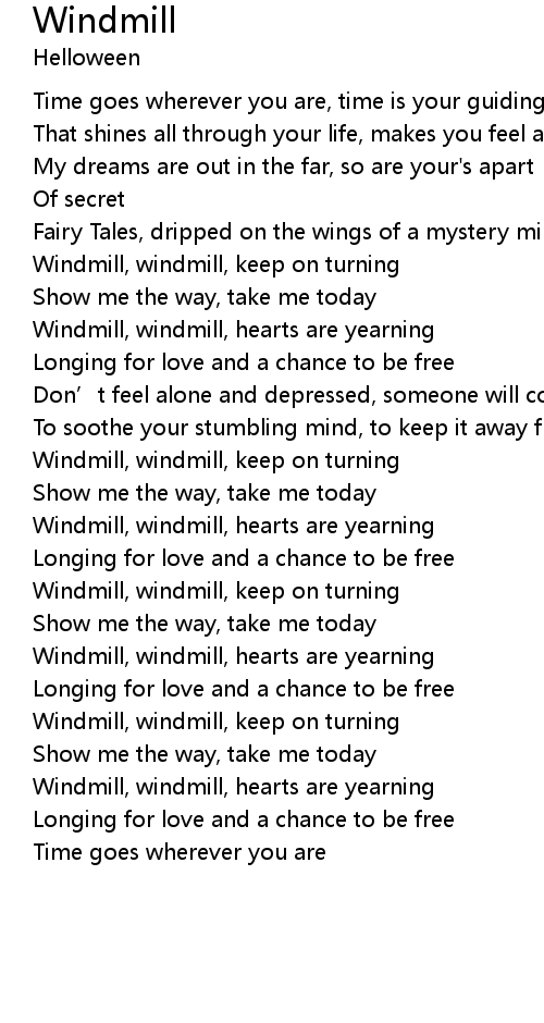 | Windmill, windmill, hearts are yearning | |