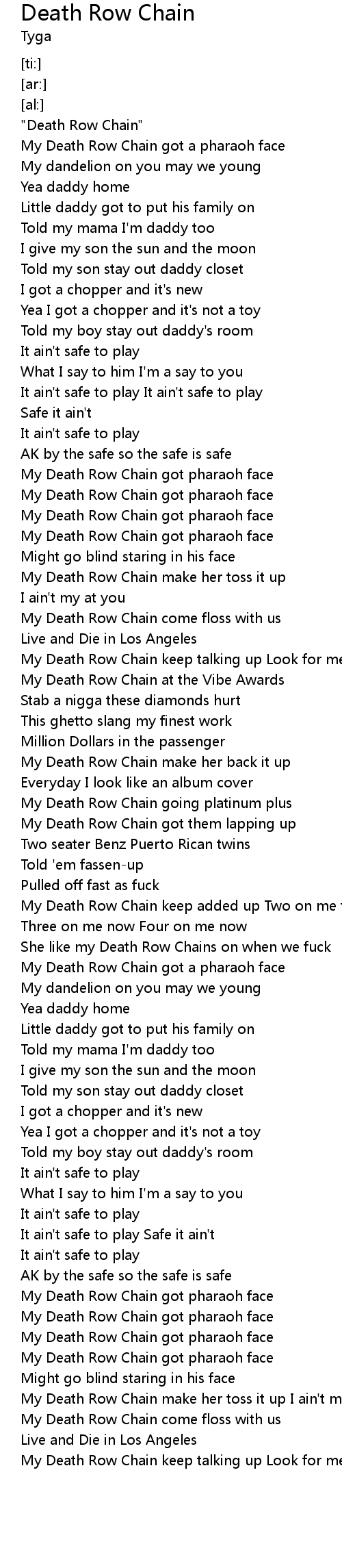 My Death Row Chain keep talking up Look for me |