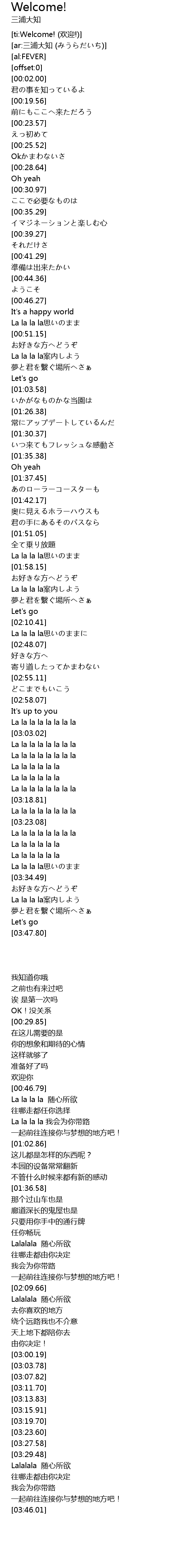 [ti:Welcome! (欢迎!)] |