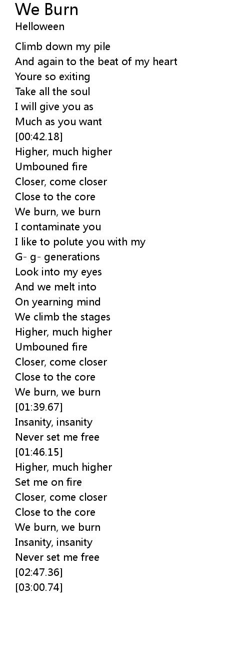 | [02:34.24] | We burn, we burn |