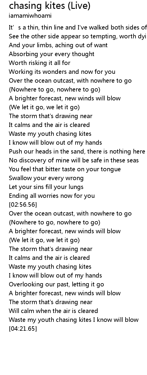 | [04:15.21] | Waste my youth chasing kites I know will blow |