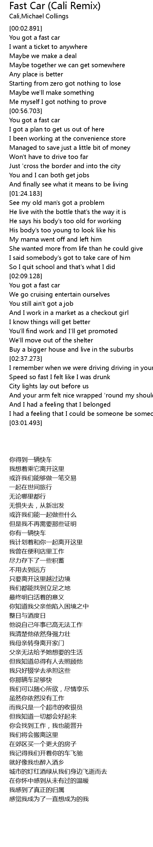You got a fast car |
