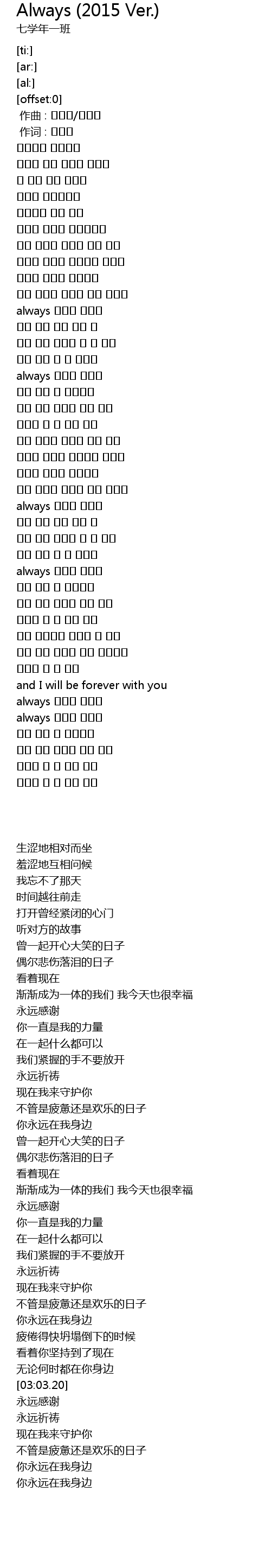 | [03:37.69] | 언제나 넌 내 곁에 있어 |