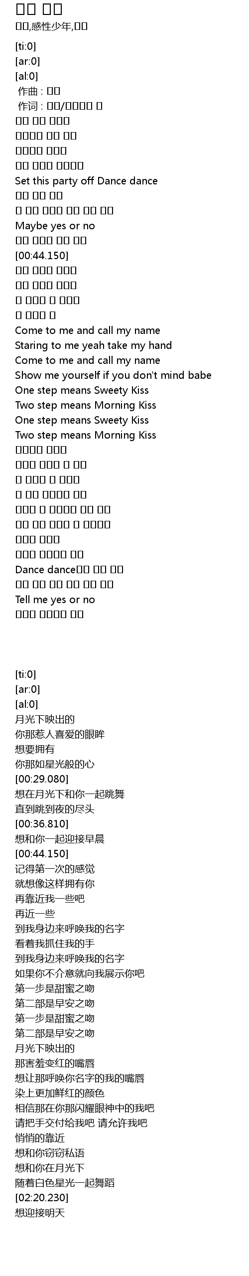 | [02:13.520] | Dance dance달빛 아래 너와 |