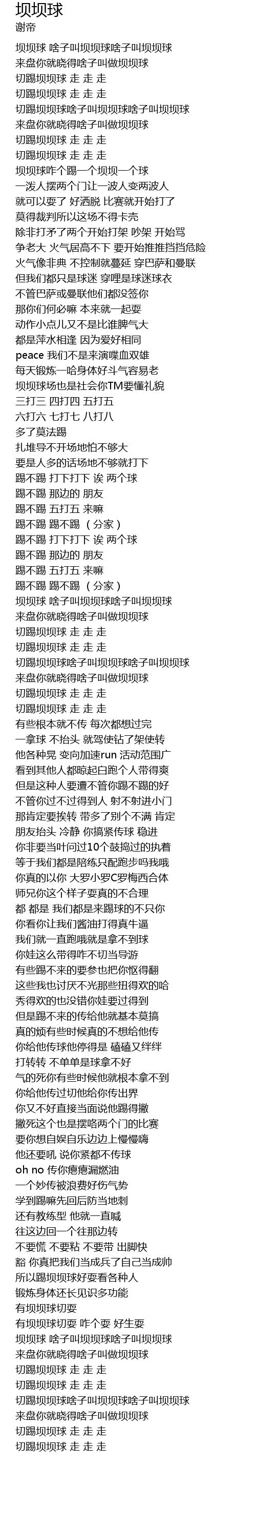 | [04:34.55] | 切踢坝坝球啥子叫坝坝球啥子叫坝坝球 |