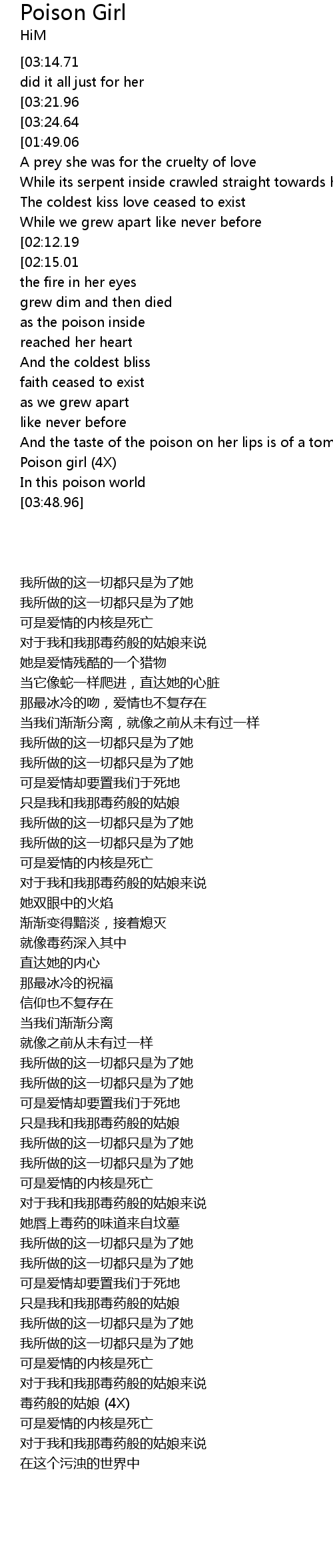 | [03:40.18][03:24.64][02:30.38][01:28.40][00:10.85] | For me and my poison girl |