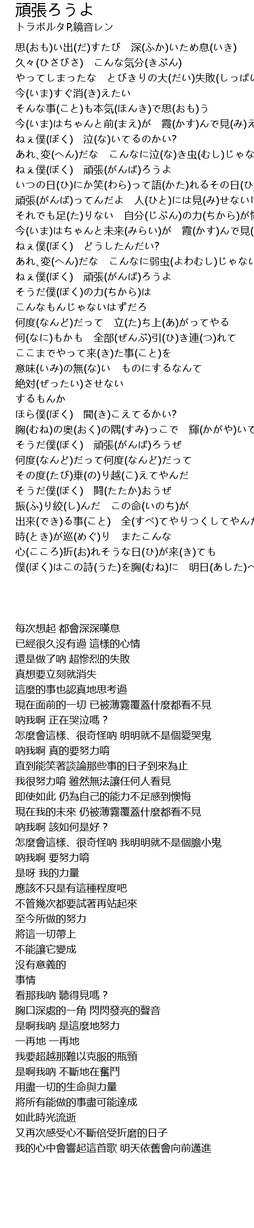 | [02:03.03] | ねぇ僕(ぼく) 頑張(がんば)ろうよ |