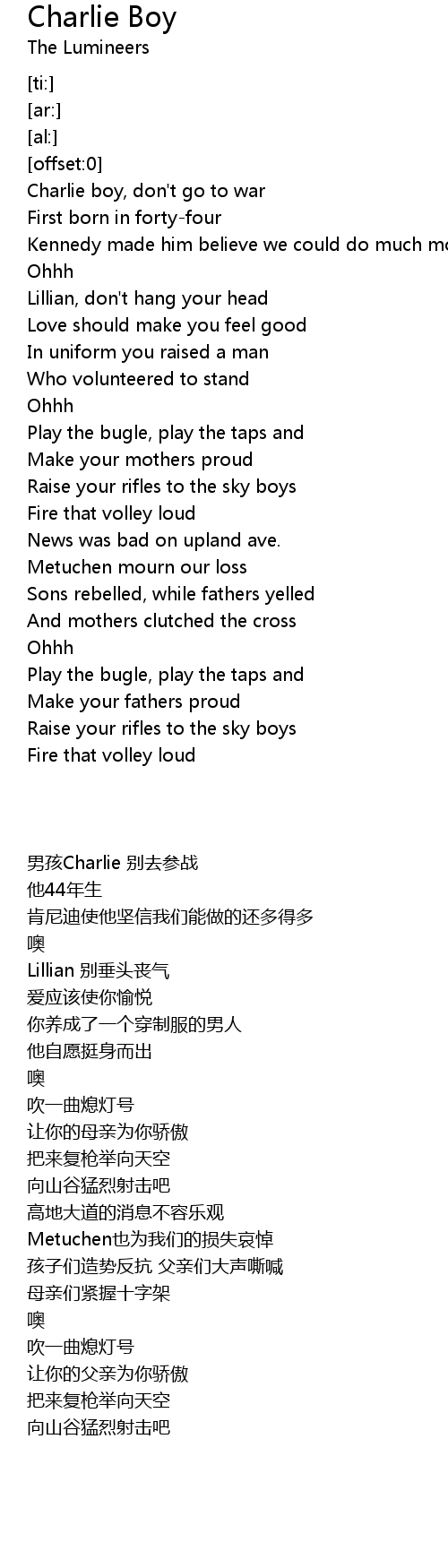 Charlie boy, don't go to war |