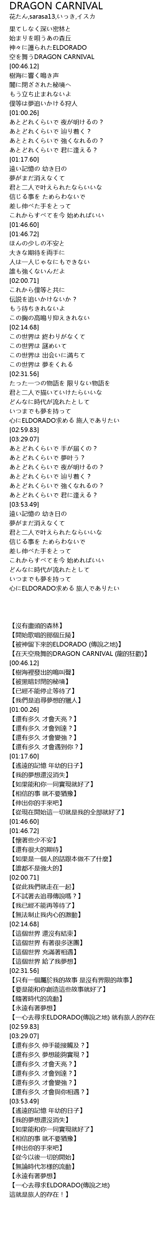 | [00:42.56] | 【在天空飛舞的DRAGON CARNIVAL (龍的狂歡)】 |