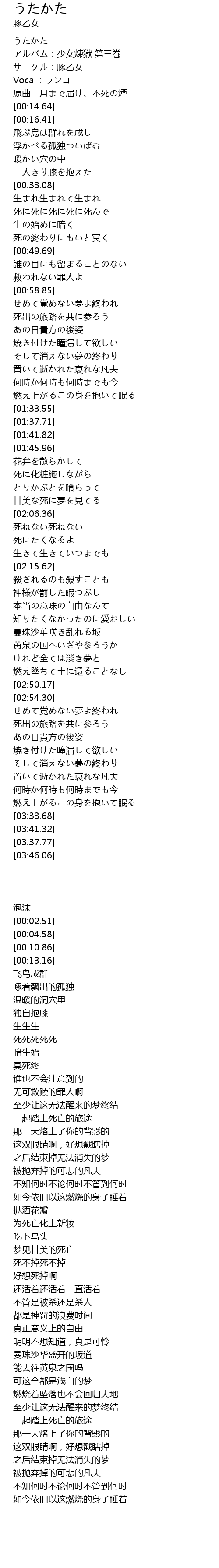 | [00:13.16] | 原曲:月まで届け、不死の煙 |