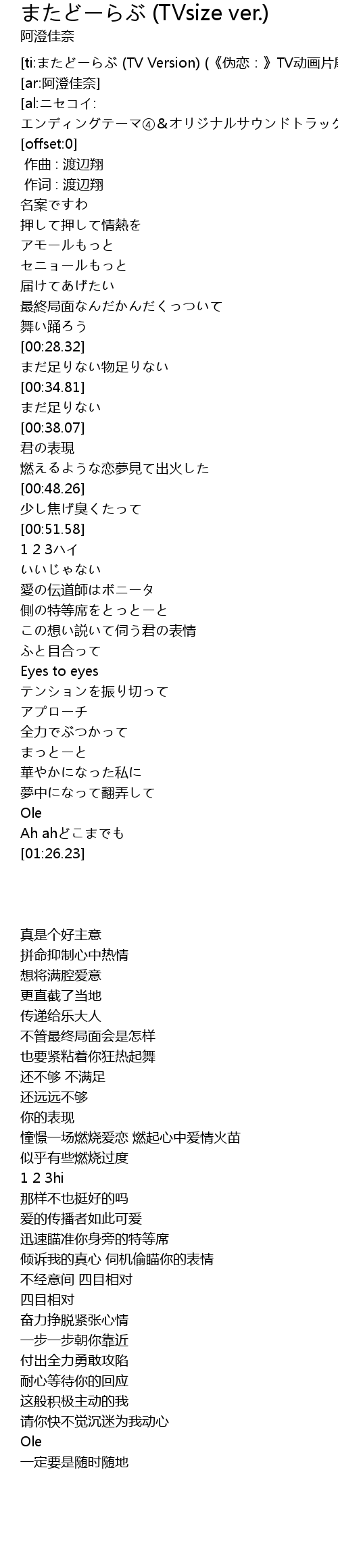 | [ti:またどーらぶ (TV Version) (《伪恋:》TV动画片尾曲)] | |