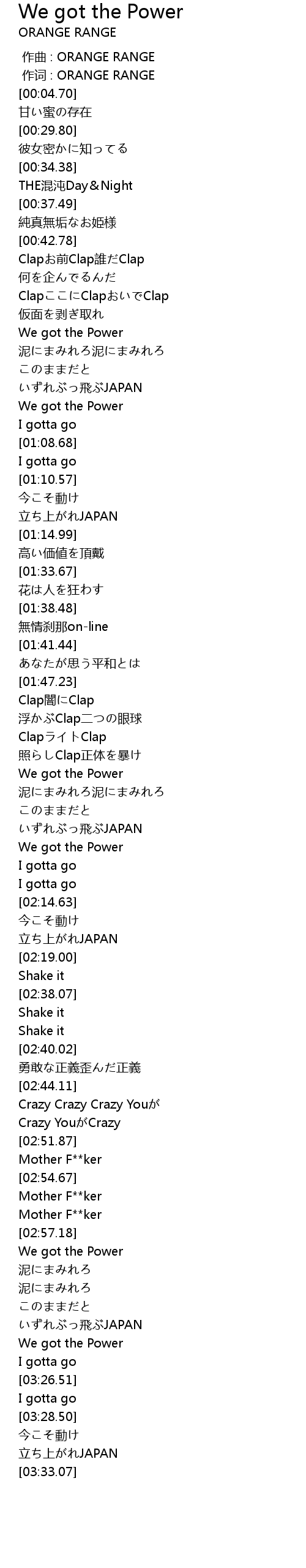 | [03:24.71] | We got the Power |