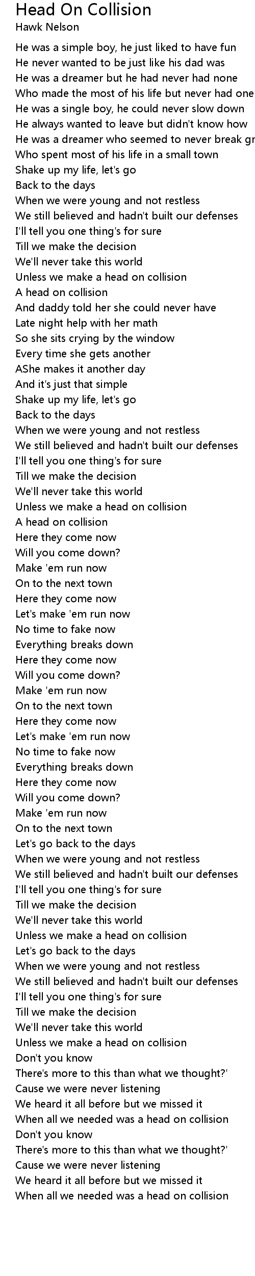 When all we needed was a head on collision |