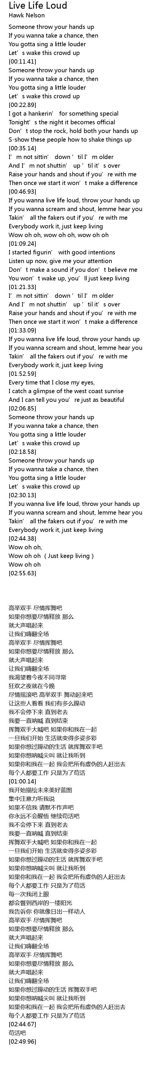 | [00:47.26] | If you wanna live life loud, throw your hands up |