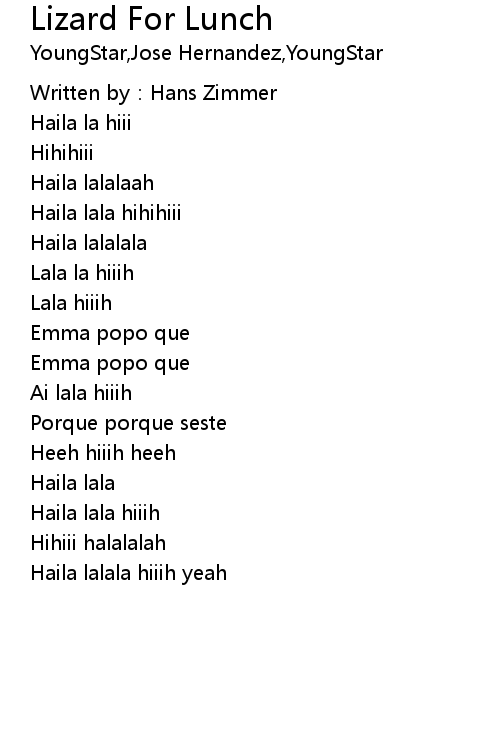 | 歌曲 | Lizard For Lunch |