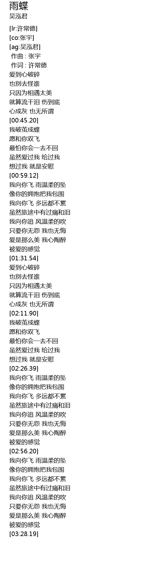 | [02:57.24] | 我向你飞 雨温柔的坠 |