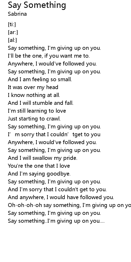 | [03:30.57] | Say something..I'm giving up on you.... |