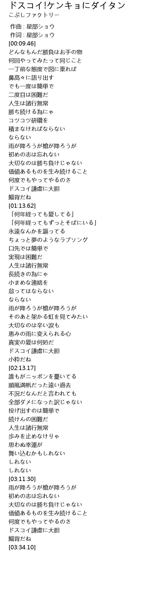 | [03:30.93] | ドスコイ謙虚に大胆 |