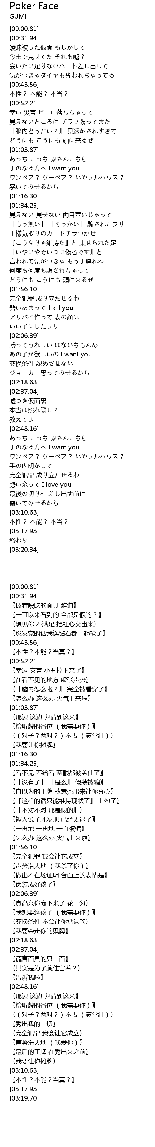 | [02:53.36] | ワンペア? ツーペア? いやフルハウス? |