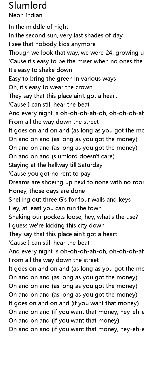 On and on and (slumlord doesn't care) |