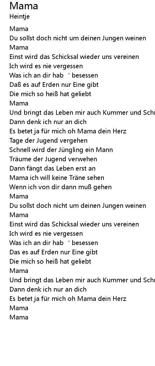 | Es betet ja fü r mich oh Mama dein Herz | |